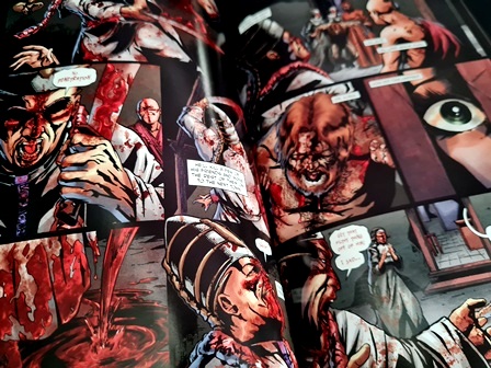 However, where the strength in this first story really lies is with the levels of unrelenting (and I really fucking mean unrelenting) violence and no-holds-barred gore. As soon as the scene is set (a matter of a couple of pages or so) and the characters have been introduced (a handful more pages) then the story just lets loose with a tsunami of adrenaline-pumping violence and blood-drenched mayhem.
