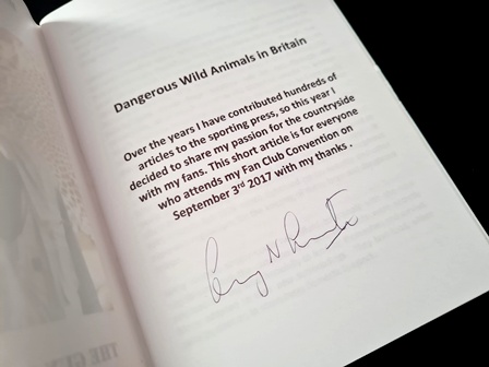 “Over the years I have contributed hundreds of articles to the sporting press, so this year I decided to share my passion for the countryside with my fans. This short article is for everyone who attends my Fan Club Convention on September 3rd 2017 with my thanks”.