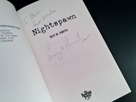 First published in April of 2010, forming Aswang Press’ debut release; Guy N Smith’s novel ‘Nightspawn’ bounded ever closer to the prolific pulp horror authors 100th published novel. Although the novel was first released in 2010, the story is actually the eventual release of a previously unpublished full-length manuscript entitled ‘The Trollop’ (which I personally think is a far better and more fitting title) from a number of years back. The age of the tale is evident throughout (with references to smoking in pubs, aged phone-bugging equipment etc), having not been edited to bring the text up to date before its release. This is a surprising omission for the publisher’s debut release, especially with unfortunate abundance of typos that remain throughout the text.