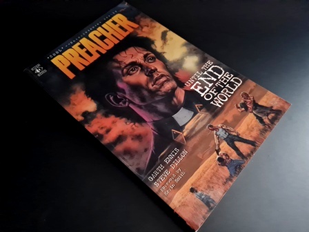 First published within a single compilation volume back in January of 1997, ‘Preacher Vol 2: Until The End Of The World’ was written by Garth Ennis with artwork by Steve Dillon. The compilation volume contained all ten of the original comics from the second series (issues 8 - 17), covering the storylines ‘All In The Family’ and ‘Hunters’, along with a foreword by film director Kevin Smith and a ten page gallery showcasing Glenn Fabry’s impressive cover artwork.