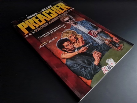 First published within a single compilation volume back in January of 1997, ‘Preacher Vol 3: Proud Americans’ was written by Garth Ennis with artwork by Steve Dillon. The compilation volume contained all nine of the original comics from the third series (issues 18 - 26), along with an introduction by popular illusionist Penn Jillette (of Penn and Teller fame).