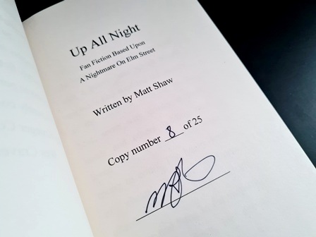 First published back in April of 2020, Matt Shaw’s written short story of ‘A Nightmare On Elm Street: Up All Night’ was a pre-production adaptation of his fan film (of the same name). The printed book was limited to just twenty-five copies, each signed and hand-numbered, as one of the perks of the crowd funding project used to fund the creation of the fan film.