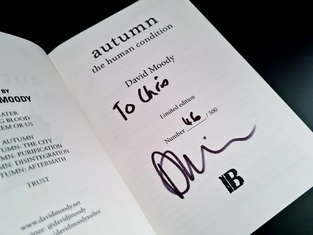 As a whole ‘Autumn: The Human Condition’ is an incredible piece of fiction – documenting the end of the world and the rise of the dead through the eyes and emotions of so many very different perspectives. The book is rich in characterisation and amazingly in touch with the elements that make us human. Moody has such a talent at pulling on the readers’ heartstrings within the most oppressive and horror-rich environments. And this book does this in bucket loads. Absolutely essential ‘Autumn’ reading.
