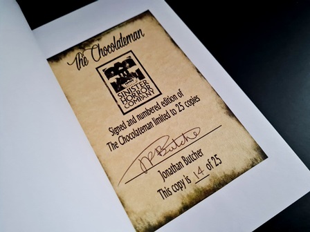 First published as a standalone publication back in April of 2017, British author Jonathan Butcher’s ‘The Chocolateman’ was released by The Sinister Horror Company as a special edition signed and numbered chapbook, with only twenty-five of the hand numbered publications being released.