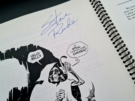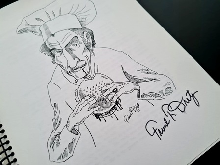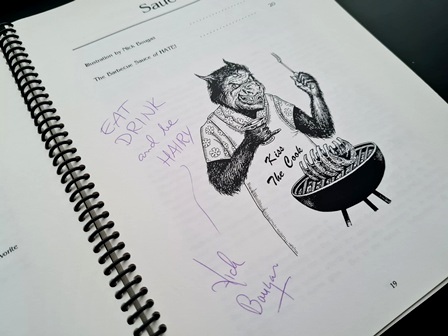 For me the highlights of the cookbook are the anecdotal ponderings and the whimsical stories that some of the contributors have included alongside their respective recipes. We have US author John Shirley (and his wife Micky) musing about those who include ‘love’ as a secret ingredient, then why not ‘hate’? This then leads to a hilarious step-by-step recipe, with short, snappy interjections, for how ‘hate’ can be added to the dish. Frigging brilliant!