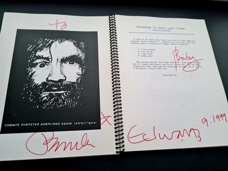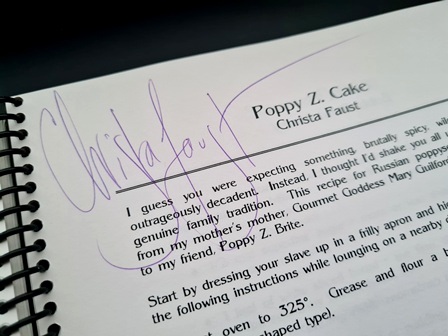 Copies of the cookbook were made available at a signing and recipe-sampling party Dark Delicacies hosted in North Hollywood on Sunday 26th September 1999. The cookbook was priced at $19.95 with $10 of each sale going to the NEVA Foundation, which helps abused and abandoned dogs.