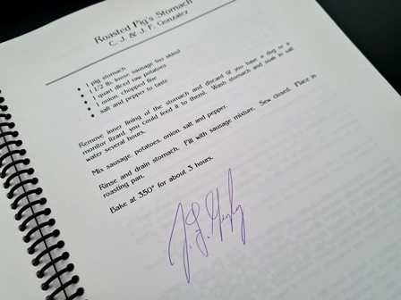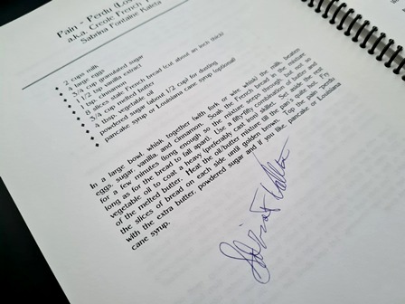 The cookbook not only contains recipes, but also some stories about how the recipes came to be, and other fun contributor input.