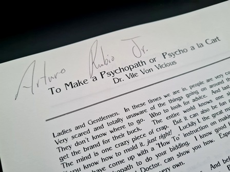 - To Make A Psychopath or Psycho a la Cart – Arturo Rubio Jr – 2 Pages
