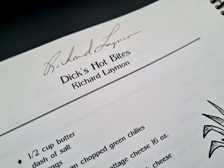 First published back in September 1999, ‘Conjuring Dark Delicacies’ was a horror themed cookbook, containing a collection of recipes created by writers, artists and actors associated with the Los Angeles bookshop – Dark Delicacies. Contributors included Stephen King, Richard Laymon, Clive Barker, Tim Curry (of ‘The Rocky Horror Picture Show’), actress Pamela Franklin, and William F. Nolan.