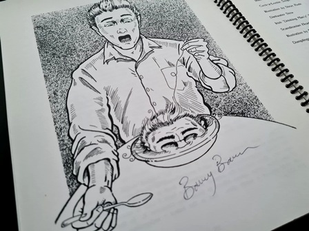 The cookbook also contains illustrations throughout by Gak, Mel Whitlow, Nick Bougas, Barry Barnes, Steve Rude, Pamela Edwards, Pat Fish, Mark Williams, Clive Barker, John Shamburger, Frank Dietz, Steven Hughes, Jason Voss, Bernie Wrightson, Frank Forte, Jeff Haas, Tony Gleeson, and Colleen Crary.