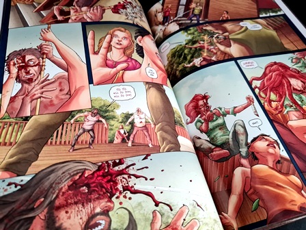 The artwork, as always, is absolutely top notch. Duarte and Holland do a sterling job at keeping the splatter varied and imaginative (one of the things the Crossed fanbase love about the comics). There’s impaled corpses ala ‘Cannibal Holocaust’ (1980) and more exploding brain matter than you can shake a gore-encrusted stick at. Although one thing that’s noticeably missing is the amount of over-the-top sexual debauchery that usually comes with the territory. There are a few moments here and there, but nowhere near what you’d usually expect in a Crossed story.