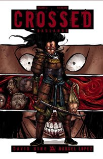 First published within a single compilation volume back in July of 2015, the thirteenth instalment in the post-apocalyptic ‘Crossed’ series was entitled ‘Crossed Volume 13: Badlands’ and collected together issues 71 – 74 which contained the ‘Five Bloody Fingers’ story which was written by David Hine with artwork by Nahuel Lopez, along with the ‘Crossed Special 2014’ story which was written by Justin Jordan with artwork by Fernando Heinz.