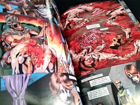 The final offering in the volume is by far and away the most graphic. Writer Simon Spurrier utilises all of artist Raulo Caceres’ talents at depicting mind-numbing scenes of explosive violence and gore. I kid you not – almost every other page in this story makes even the most extreme of Cannibal Corpse album covers look like Disney sketches in comparison.