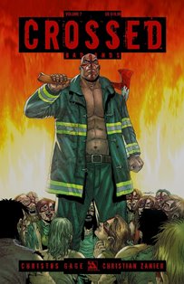 First published within a single compilation volume back in December of 2013, the seventh instalment in the post-apocalyptic ‘Crossed’ series was entitled ‘Crossed Volume 7: Badlands’ and contains two separate stories : ‘Quisling’ written by Christos Gage with artwork by Christian Zanier, and ‘Breakdown’ written by David Lapham with artwork by Miguel A. Ruiz. The compilation volume contains all eight of the original comics from the seventh series (Badlands issues 29 – 36).