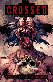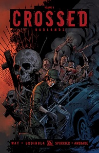 First published within a single compilation volume back in June of 2014, the ninth instalment in the post-apocalyptic ‘Crossed’ series was entitled ‘Crossed Volume 9: Badlands’ and contains two stories : ‘Grave New World’ written by Daniel Way with artwork by Emiliano Urdinola, and ‘The Wizard Of Aus’ written by Simon Spurrier with artwork by Gabriel Andrade. The compilation volume contains all seven of the original comics from the ninth series (Badlands issues 44 – 49).