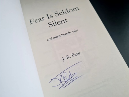 First published back in December 2016, British author J.R. Park’s ‘Fear Is Seldom Silent’ was penned as a challenge to create four stories with randomly pre-selected objects. The book was created as a gift to friends over Christmas 2016, with a few given away to competition winners in January 2017. Only ten copies of the book were printed.