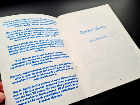 First published back in 1999 ‘Horror Shorts – 1st Collection’ was the first of these staple-bound collections of short stories to be published by the prolific pulp horror author Guy N Smith. The collection contains twelve shorts spanning an impressive thirteen years of writing (from 1977 to 1990).