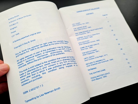 The short was originally published in the somewhat unheard of publication ‘Beyond The Boundaries’ Vol 1 Issue 3 (1995) magazine, and later reprinted within the ‘Limited Edition’ (2009) chapbook. Unfortunately, the Author’s Note that follows on from ‘Pocklington’s Walk’ in this printing of the short story has been accidentally cut short by the publishers, which is a shame.