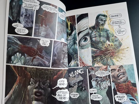 What’s great to see is that the graphic novel has also managed to really capture the essence of Boris Dragosani. We see the necromancer as horrific and brutal as he was in the novel. Indeed, at the very beginning, we see graphic depictions of his necro rape, with him ripping and clawing at the dead Russian operative’s flesh, before cutting out the brain to draw out the secrets from within.