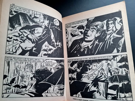 Quite purposefully, the writer keeps the mystery alive through much of the story, not really explaining what the hell’s going on, until the final few pages reveal all (well, almost all!). We see our protagonist, Tim Carey, thrown into a wild nightmare-like scenario in the dead of night, ending when he’s bitten by a vampire bat.