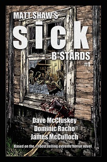 First published in October of 2016, issue one of the graphic novel adaptation of British author Matt Shaw’s controversial extreme horror novel ‘Sick B*stards’ (2014) was adapted by Dave McCluskey with artwork by Dominic Racho and lettering by James McCulloch.