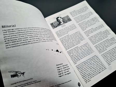 Splatterpunk Editor and all-round splatter guru Jack Bantry kick starts issue six (following a short Editorial dedicating the issue to the late great J.F. Gonzalez) with a one page list detailing his top ten splatter novels, each accompanied with a short synopsis. Basically an excellent ‘check list’ to get the splatter fun going.