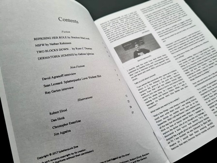 First published back in April of 2017, issue eight of Jack Bantry’s ‘Splatterpunk Zine’ offered up another load of A5 black & white pages, packed with more stories, articles, reviews and interviews of uncompromisingly violent horror and gore. Like with the previous issues, the zine was made available for purchase via Bantry’s ‘Splatterpunk Zine’ website.
