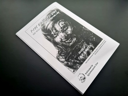 First published back in March of 2021, issue ten of ‘Splatterpunk Zine’ was compiled and edited by Jack Bantry, offering up another blood bucket full of A5 black & white pages, packed with more stories, articles, reviews and interviews of uncompromisingly violent horror and gore. The zine was made available for purchase via Bantry’s ‘Splatterpunk Zine’ website.