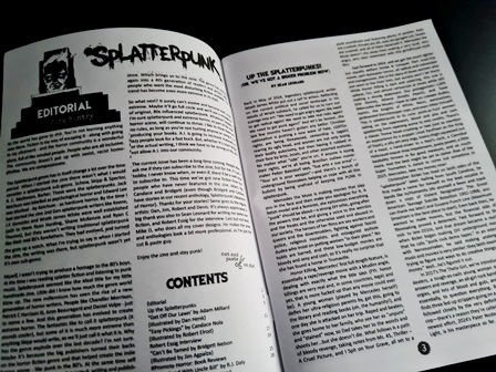 Splatterpunk Zine’s Jack Bantry opens up the zine with a brief look back at the origins of Splatterpunk and onto its evolution to what he calls the 4th generation of the subgenre. With a quick warning against the use of AI, Jack signs off his editorial intro with a humble thank you to the contributors who made the zine possible.