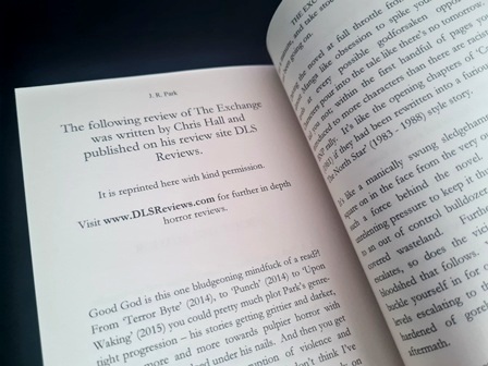 First published back in September of 2016, British author J.R. Park’s novel ‘The Exchange’ took a sidestep away from horror, instead edging towards a more gritty hardboiled thriller.