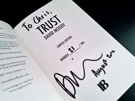 First published back in October of 2005, British author David Moody’s novel ‘Trust’ was the second book to be released by the author; originally as a self-published under the author’s own imprint – Infected Books. Since this original publication, Moody has extensively reworked the tale, rereleasing it (once again by Infected Books) in July of 2012. The re-release is a vastly improved version, of which the following review is for.